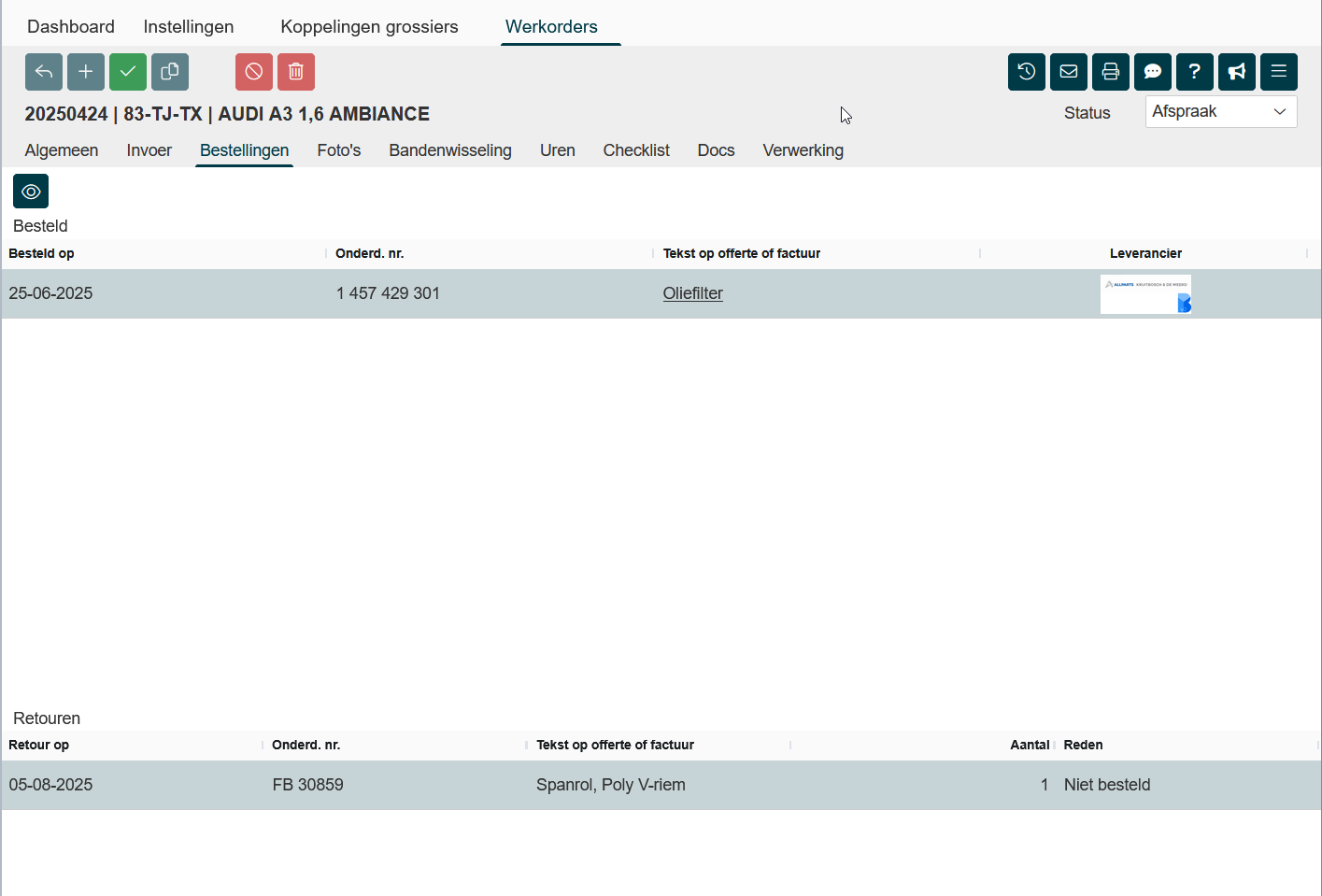Werkorder - bestellingen |