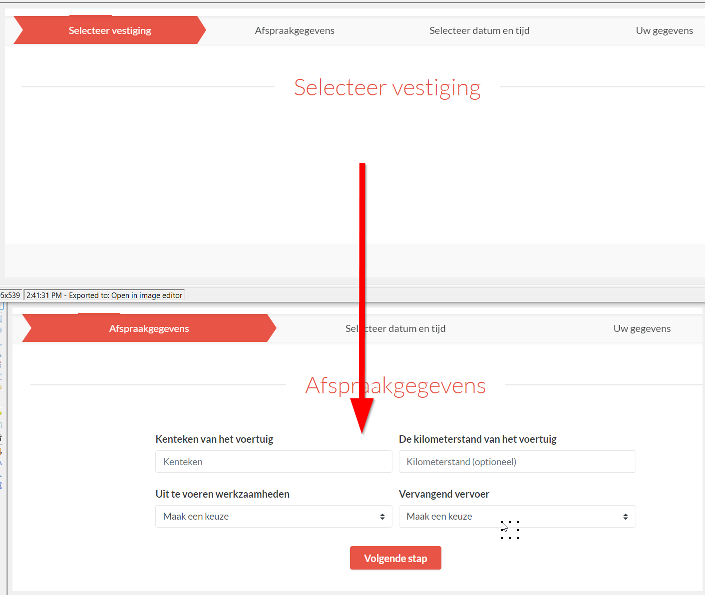 Antwoord: Wanneer er geen vestiging kan worden geselecteerd voor het maken van een afspraak dan moeten de afspraaktypes, vervangend vervoer en beschikbaarheid eerst worden opgestuurd.
