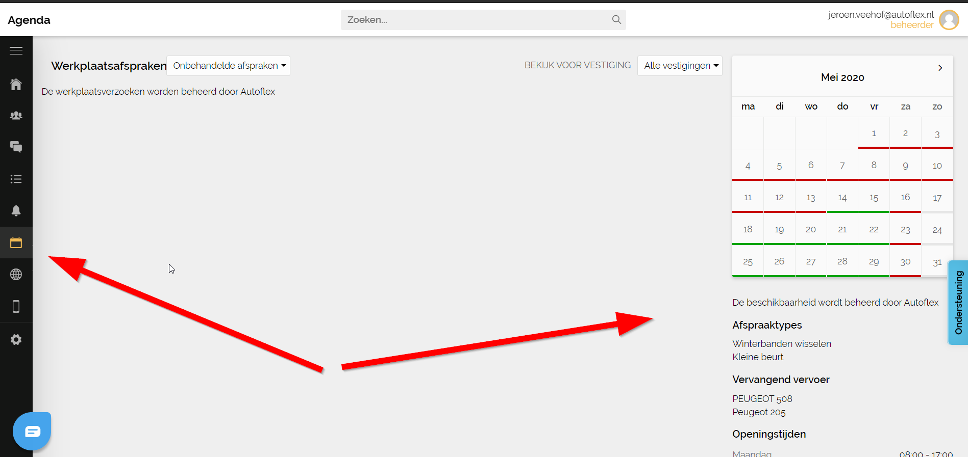 Het tweede deel is de Online afspraken. Hiermee zet je een script op je website waarmee klanten online een afspraak in jouw werkplaats kunnen maken. Deze afspraken komen binnen in jouw planning in Autoflex. Informatie over de Online planning vind je hier: https://docs.autoflex10.eu/wiki/x/Hk5N9g .