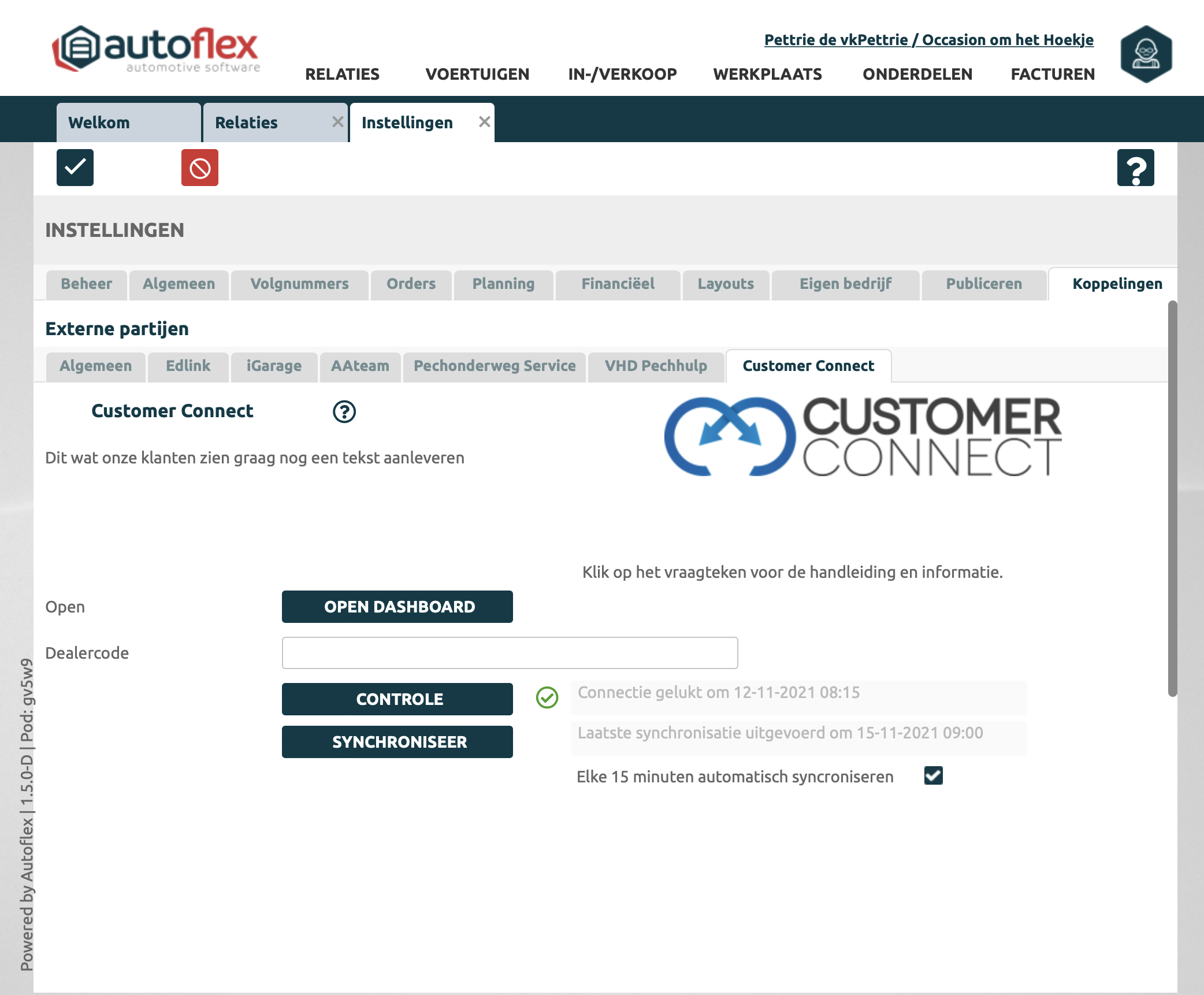Met de knop: Open dashboard kun je direct inloggen in het portaal Customer Connect