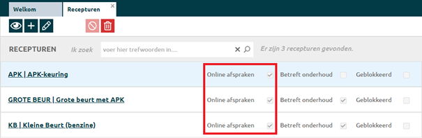 Wanneer je wil dat een receptuur als werkzaamheid wordt getoond dan moet het vinkje aanstaan bij Toon in online afspraken.