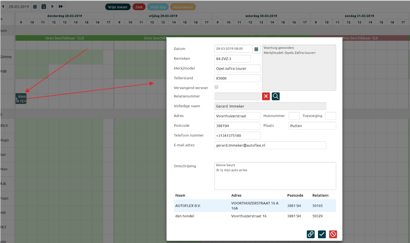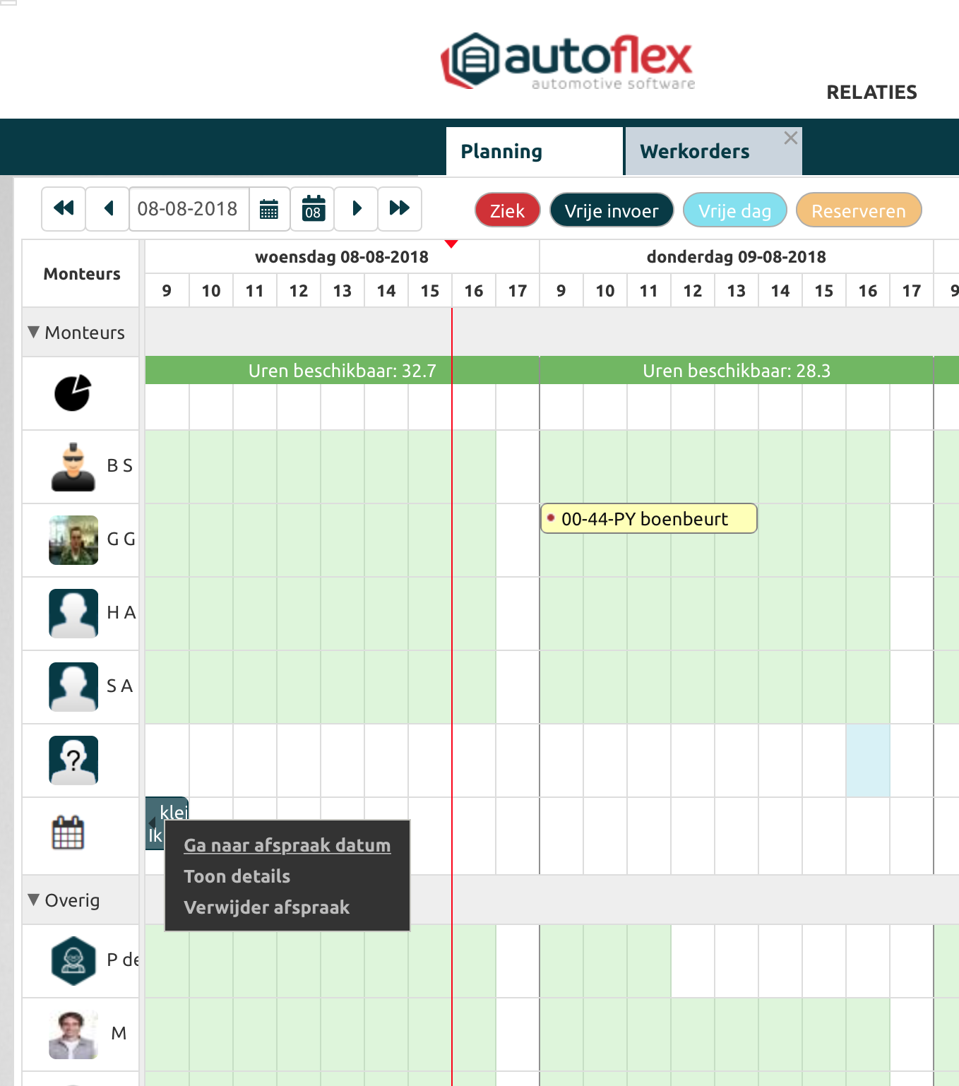 Zodra klanten online een afspraak hebben ingepland is deze zichtbaar in de planning van Autoflex.