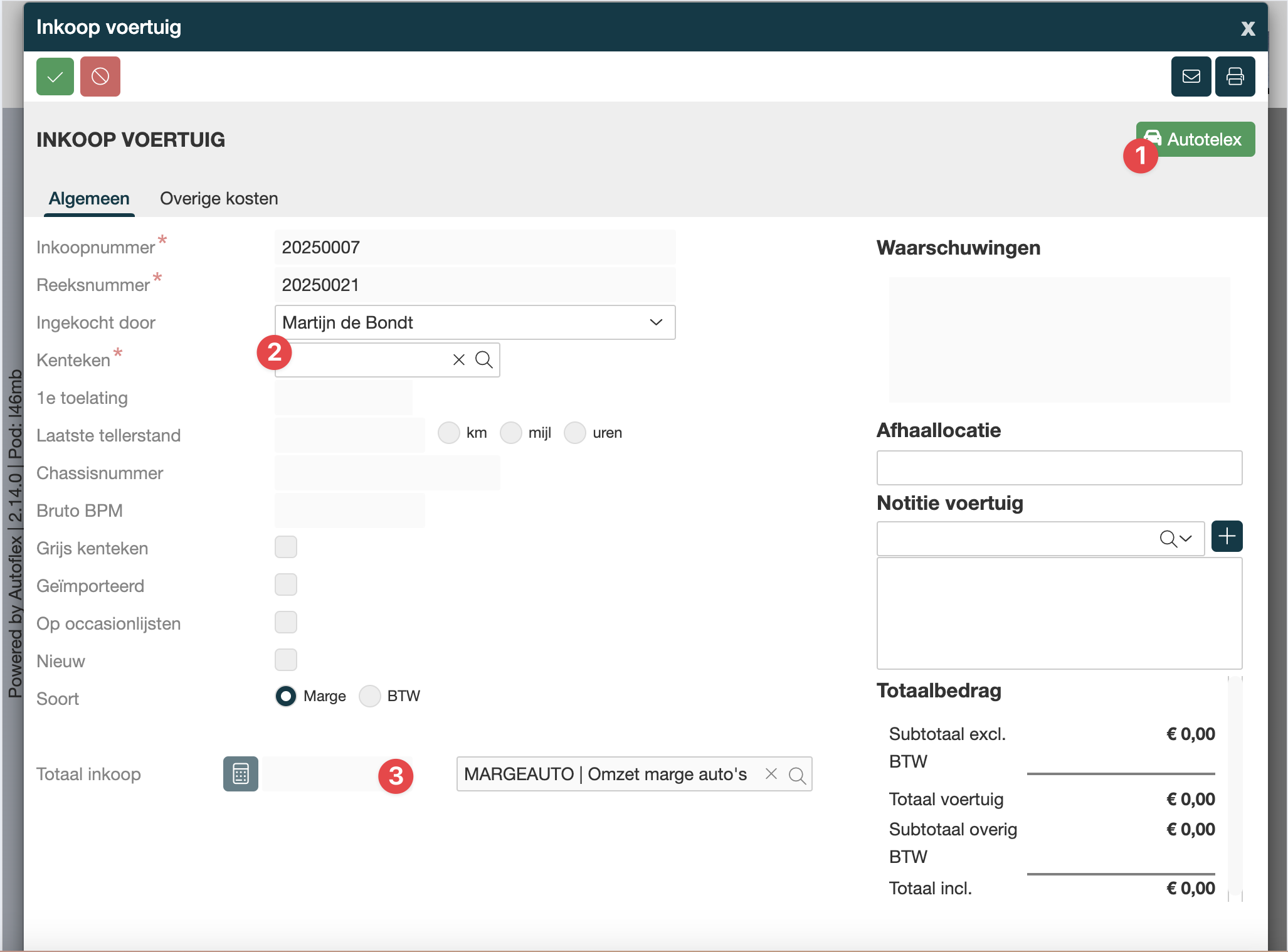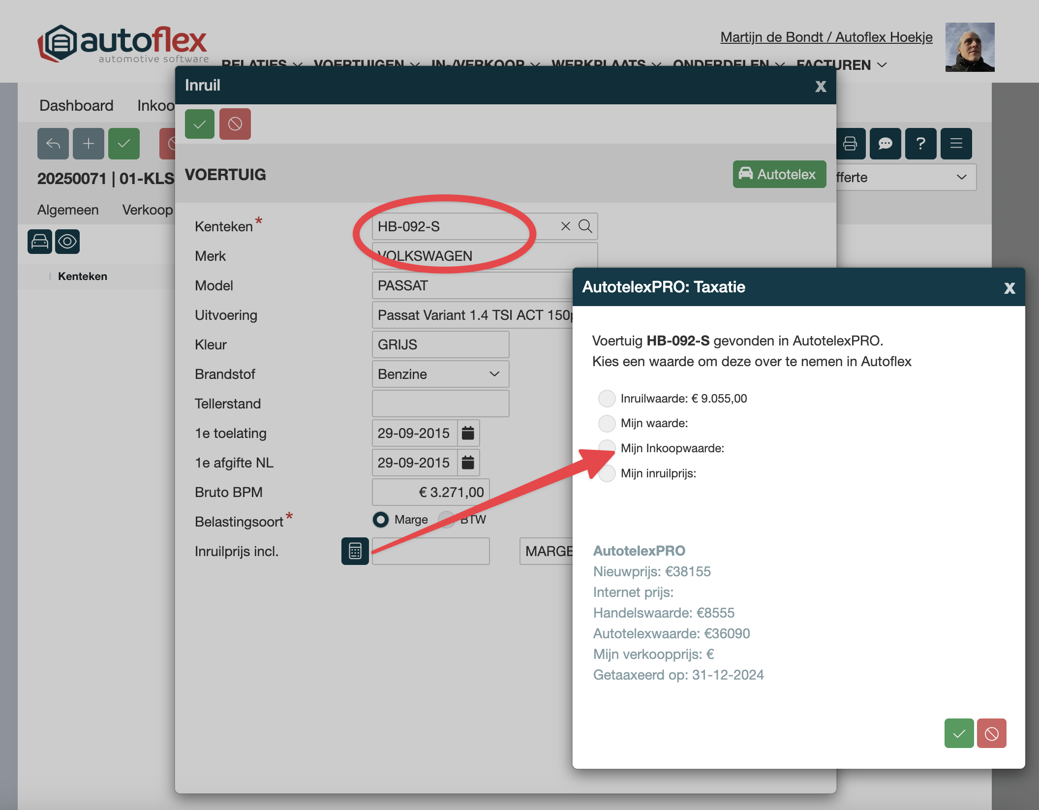 Omdat we in het inruil voertuig het kenteken hebben opgegeven, worden nu de waarden uit AutotelexPRO getoond en kunnen worden gebruikt voor de inkoop prijs. |