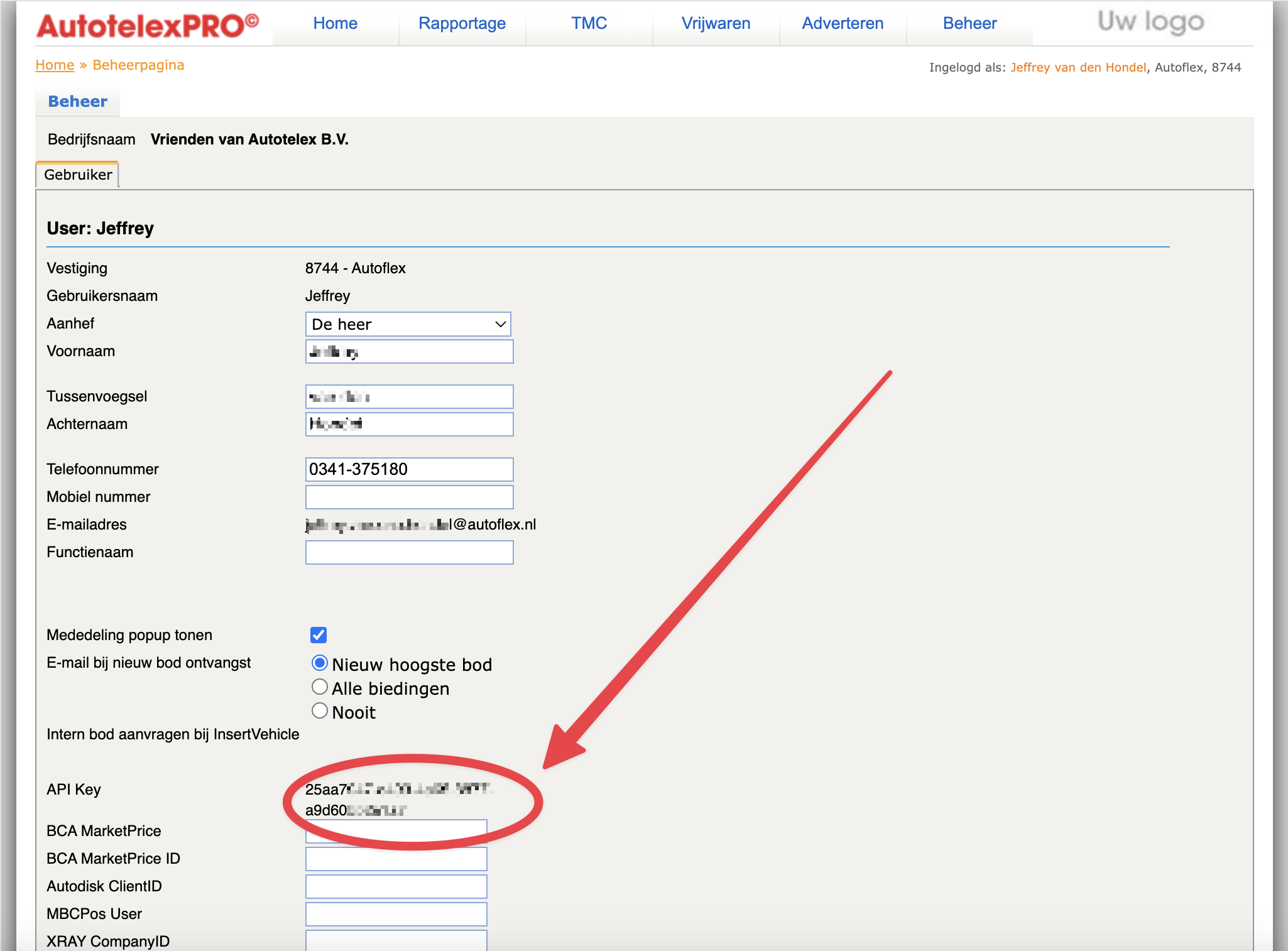 Stap 2: Vul je AutotelexPRO API key in