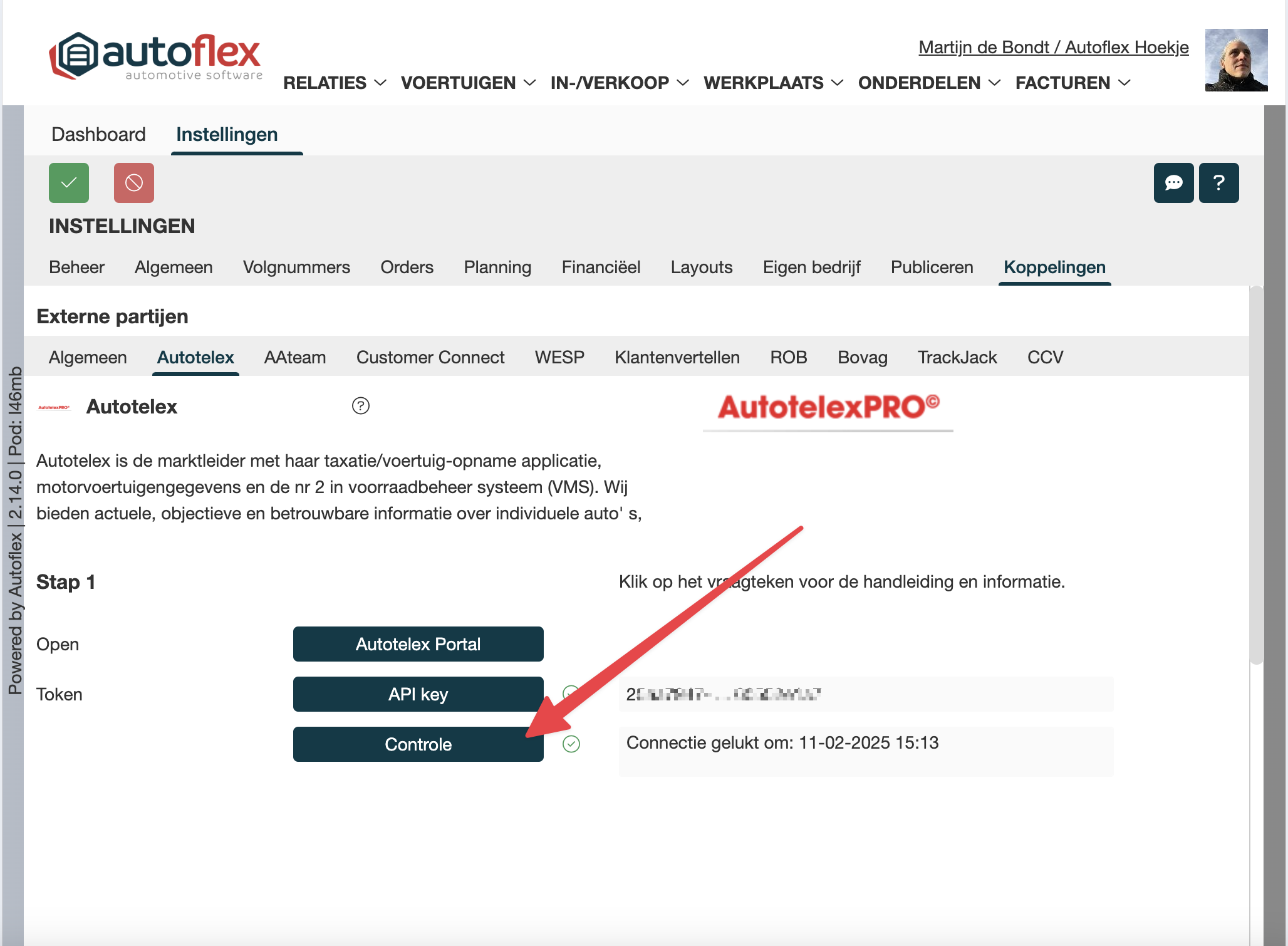Klik als laatste op de knop ‘Controle’ om te kijken of de koppeling succesvol tot stand gebracht kan worden.