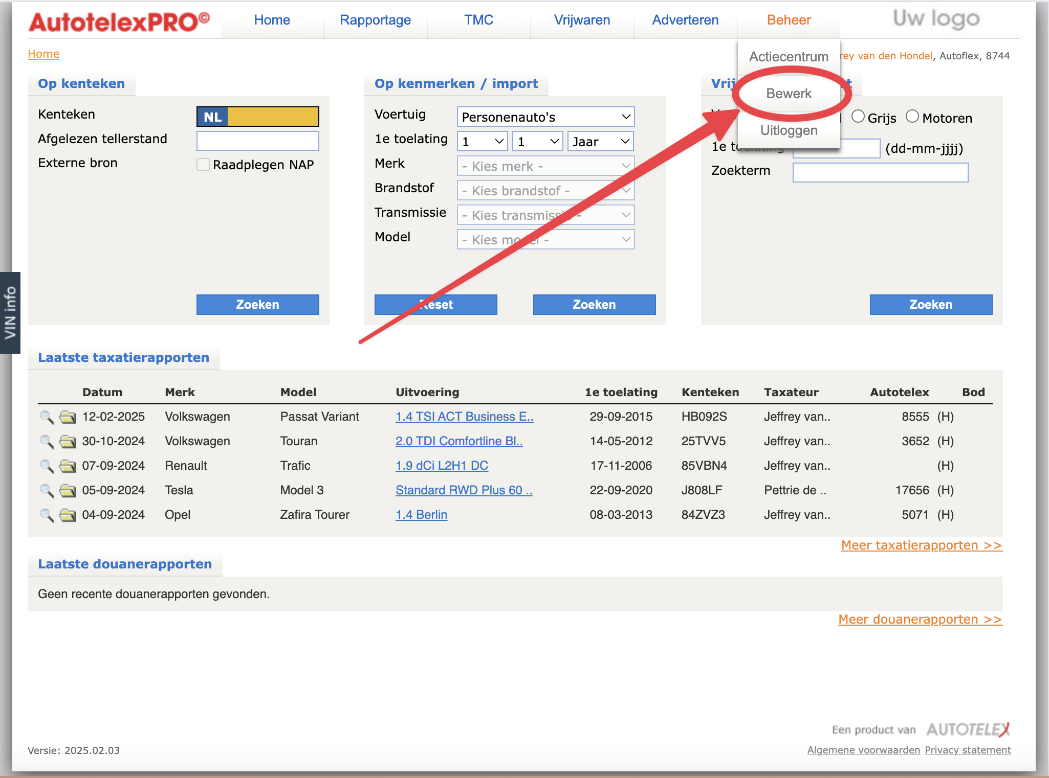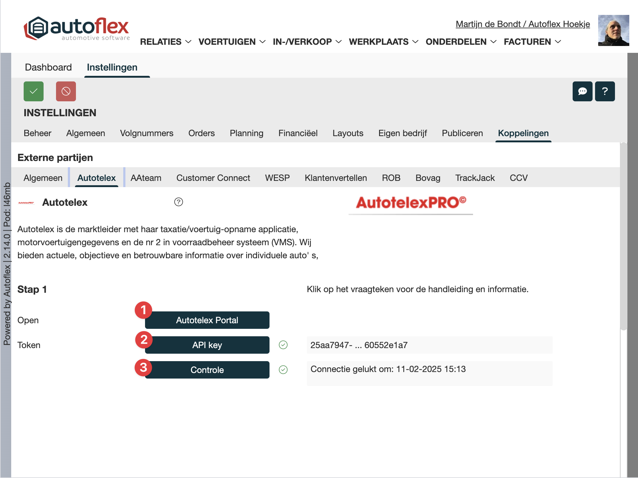 Instellingen → Koppelingen → Externe partijen → Autotelex |