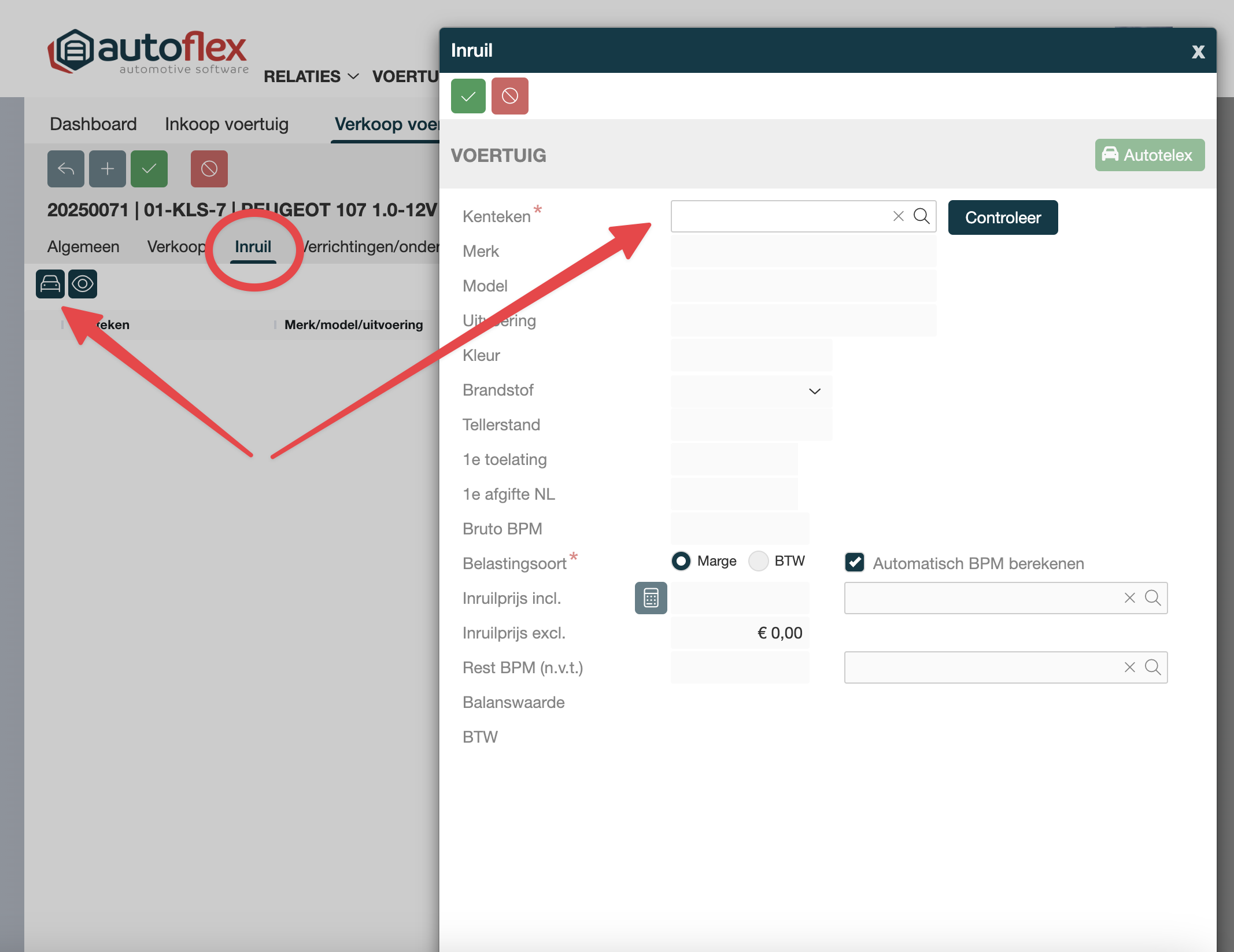 In-/Verkoop → Verkoop voertuig → Nieuw ( ➕ ) → Tab Inruil |