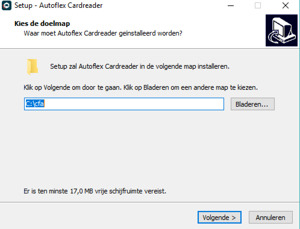 De CardReader wordt standaard in deze map geinstalleerd: C:\cfa |