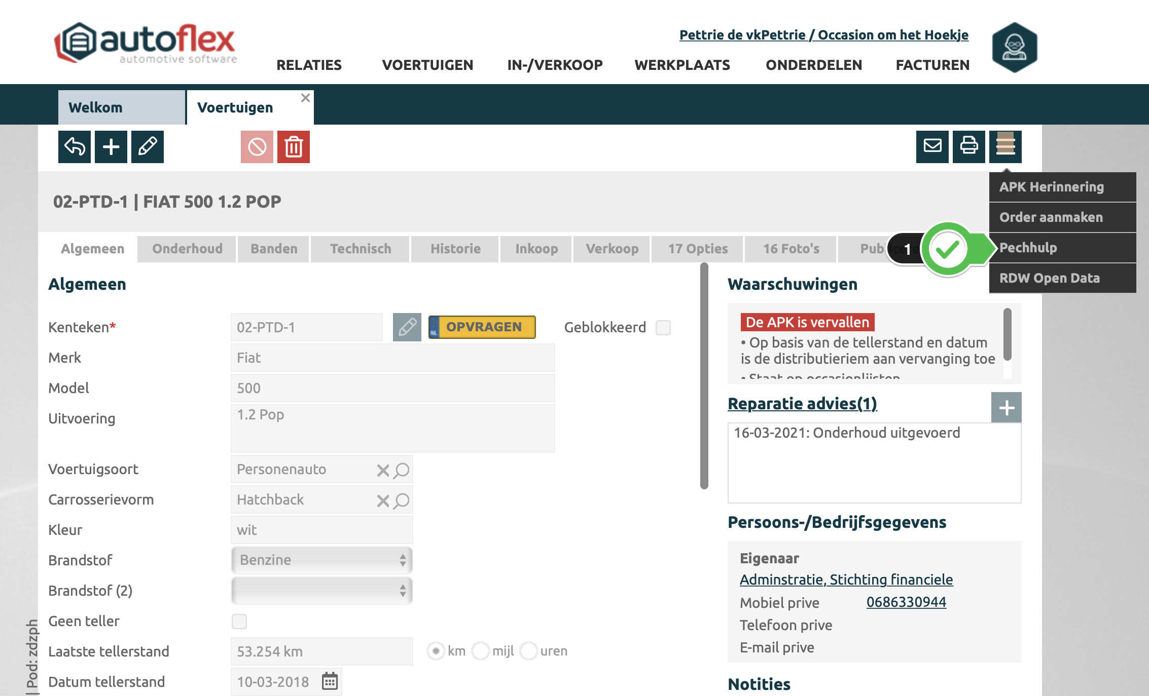 Open het voertuig waar de Pechhulp op moet worden afgesloten