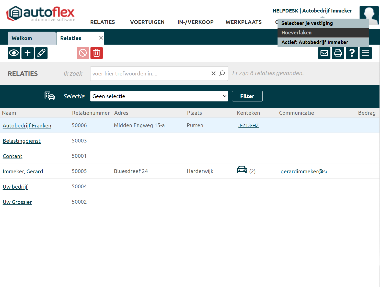 Met de module Multi-vestiging is het mogelijk om gegevens met de overige vestigingen te delen.