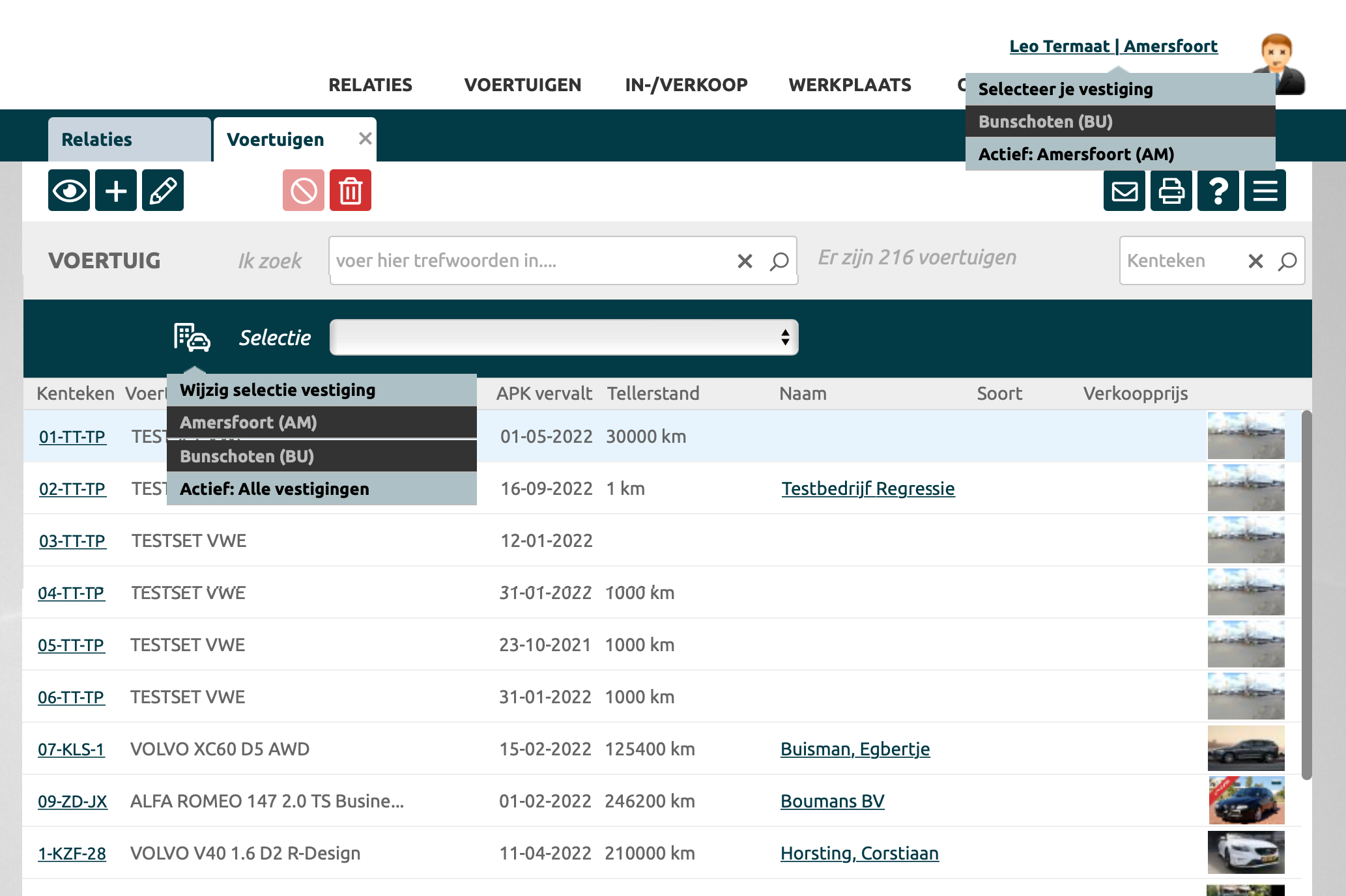 Voorbeeld van voertuigen in multivestiging |