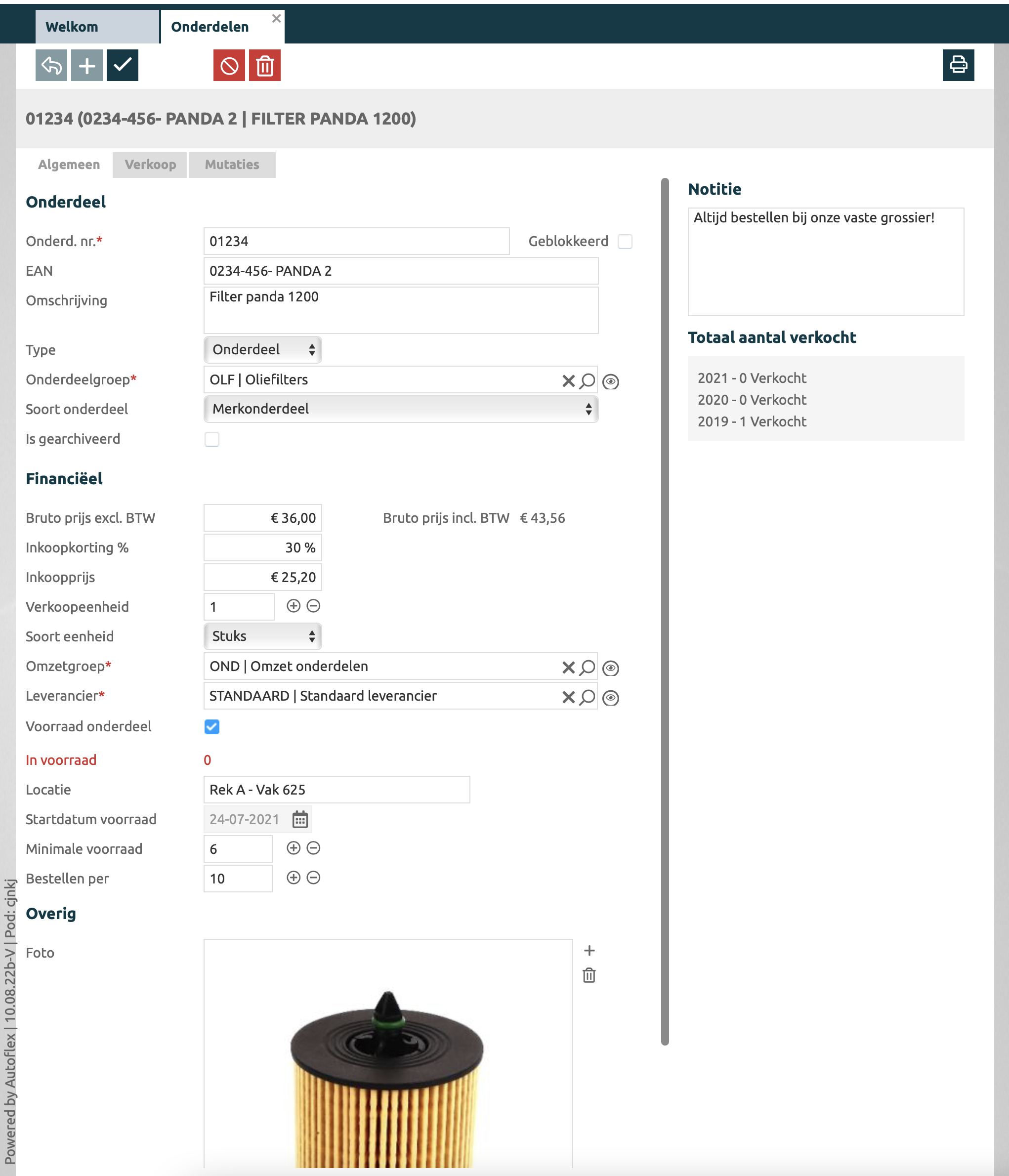 Als je beschikt over de module "Voorraadbeheer onderdelen" vul je hier de velden in voor het voorraadbeheer.