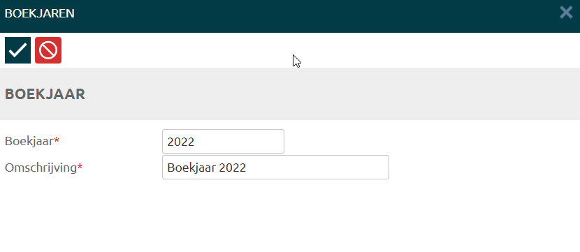 Vervolgens kun je in het veld ‘Boekjaar’ het nieuwe boekjaar selecteren.