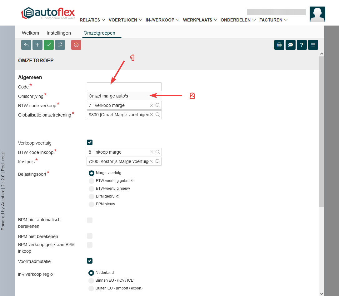 Je ziet nu dat het veld Code leeg is en dat de nieuwe omzetgroep in bewerkmodus staat |