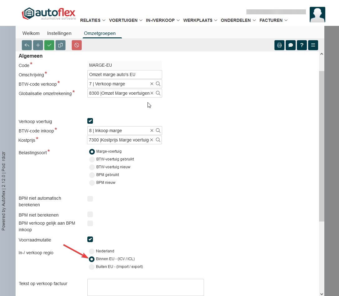Je omzetgroep voor marge EU is nu aangemaakt |