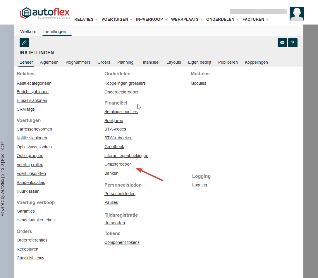 Vervolgens klik je op Omzetgroepen In de lijst met omzetgroepen zoek je de omzetgroep voor marge auto’s op. (Deze kan in jouw administratie anders heten dan in dit voorbeeld) |