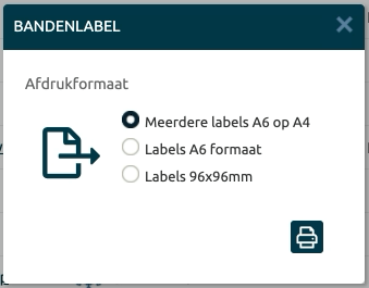 Hier kun je per bandenset labels printen op de printer naar keuze.