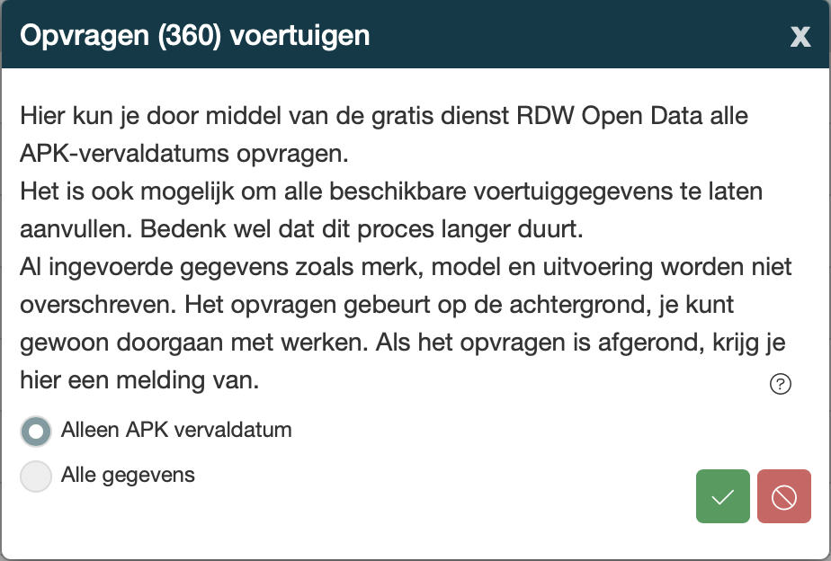 APK Data verversen van alle voertuigen