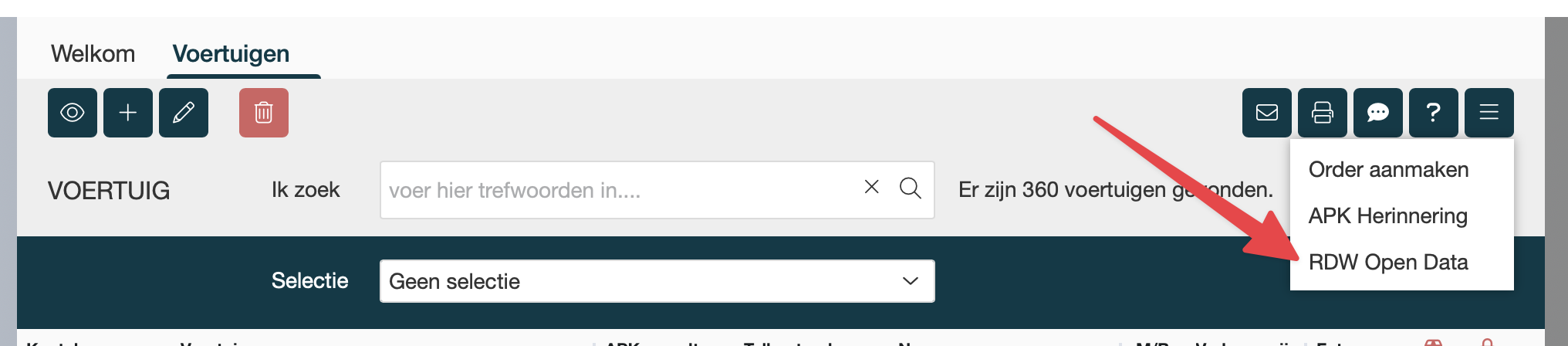 Klik in de menu op: Voertuigen → voertuigen. |