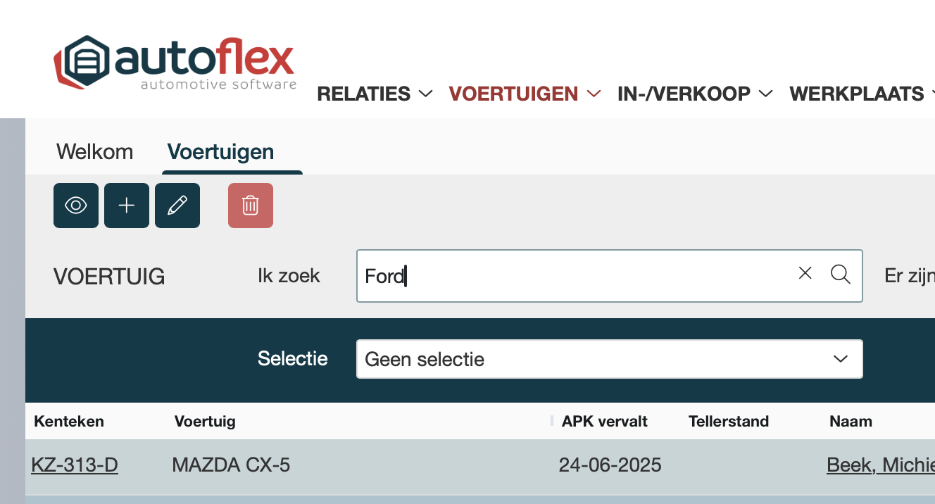 Je kan in Autoflex van alle voertuigen de APK data bijwerken via de gratis open data van het RDW.