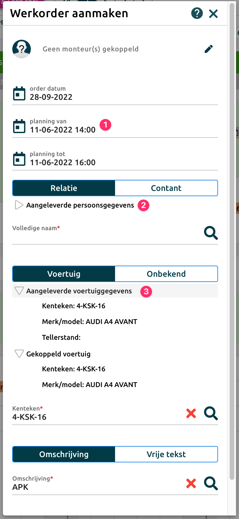 | De werkorder wizard zal een aantal extra gegevens tonen die vanuit de afspraak naar voren zijn gekomen. Dit helpt om met de correcte gegevens een goed ingevulde werkorder te maken: