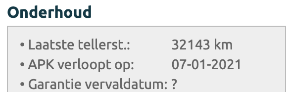 OnderhoudOnder de kop onderhoud worden alle onderhoud intervallen van het gekoppelde voertuig getoond. | |