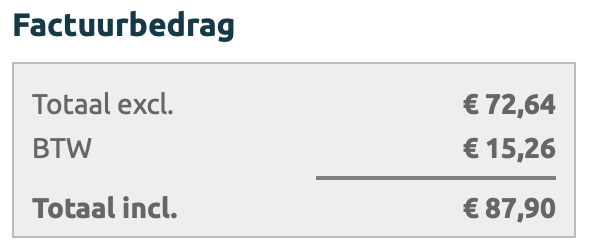 FactuurbedragDeze sectie toont het totaal van de order, zoals deze gespecificeerd is in de tab invoer | |