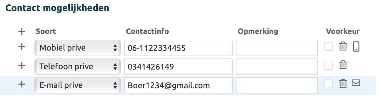 Contact mogelijkhedenIn de sectie contact mogelijkheden worden alle gegevens van de gekoppelde debiteur getoond, als er een debiteur gekozen in de wizard of bovenaan in de order. De gegevens kunnen hier ook aangepast worden, alle aanpassingen worden direct doorgevoerd in de gekoppelde debiteur/relatie. Als gekozen is voor Passant dan kunnen hier de gegevens van de passant worden ingevuld. | |