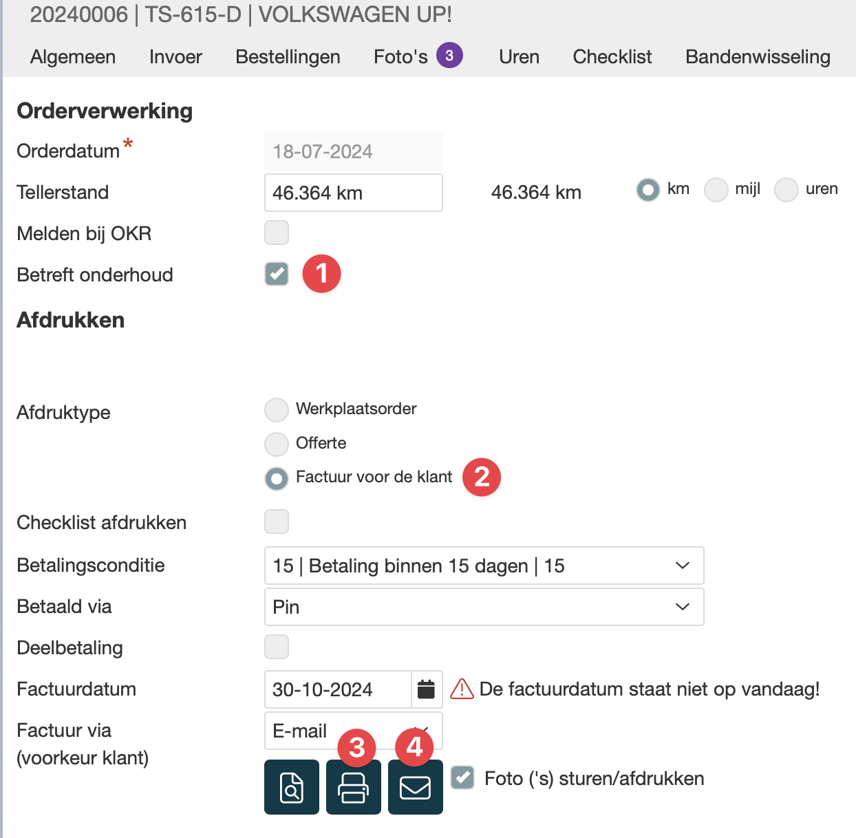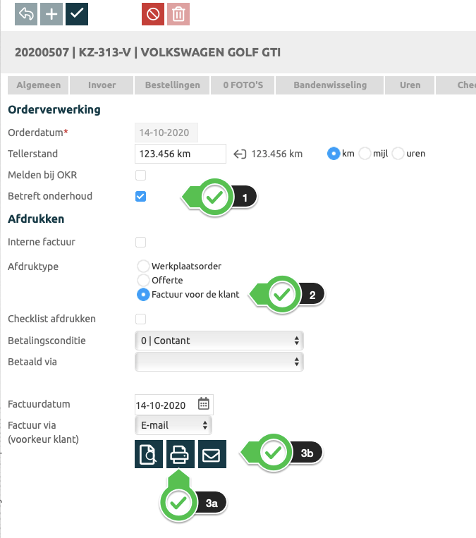 Na het verwerken van de order naar factuur worden de nieuwe onderhoud intervallen verwerkt bij het gekoppelde voertuig