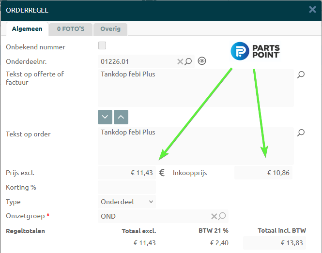 Vanuit de meeste grossiers komen in- en verkoopprijzen mee met het importeren van onderdelen. Bij waarschuwingen kan je dit via bovenstaande uitleg zelf controleren en corrigeren. |