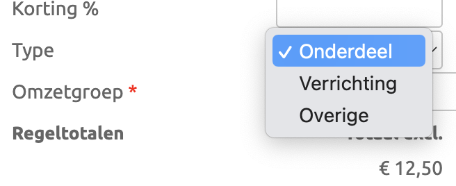 Een orderregel is van een van onderstaande onderdeeltypen:
