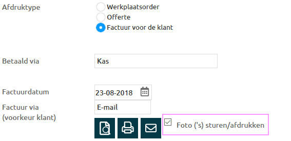 Bij een onderdeel kan je een foto toevoegen, deze foto kan je afdrukken of mailen naar de klant.
